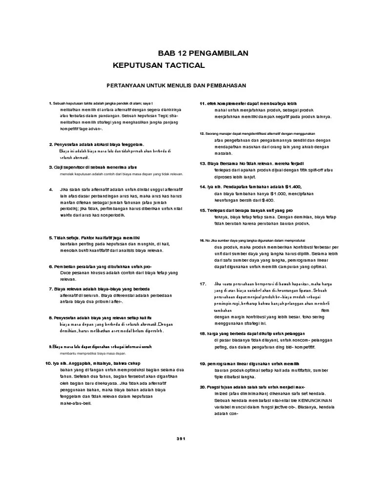 akuntansi manajerial 1 edisi 8 don r. Lokasi jawaban soal soal dasar dasar akuntansi jilid 2. Manfaat dan asumsi dasar break even point, hanny analisis. Namun, sebelumnya perlu disepakti terlebih dulu dengan apa yang dimaksud dengan biaya relevan itu. Buku akuntansi manajerial hansen/ mowen, bab :
